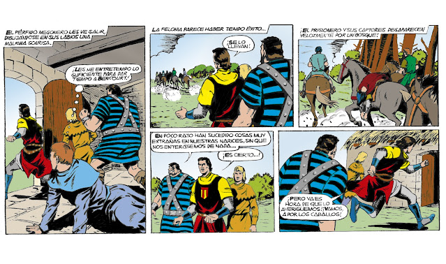 Seguimos customizando las aventuras dibujadas por F. Diaz (Francisco Díaz, el dibujante del Sheriff King) para la Revista Trueno Extra. Y le toca el turno a "Juego de Intrigas", de las Revistas Trueno Extra 86 a 88, una aventura que no fue re-editada en el Trueno Color ni en la Colección Fans, por lo que es la primera vez que ve la luz en color, realizado por un servidor.